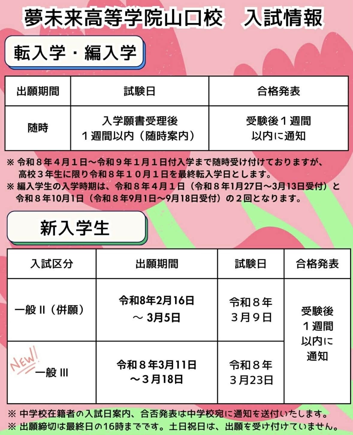 夢未来高等学院 山口校では、本年4月に開校する「第1期生」を募集しております。